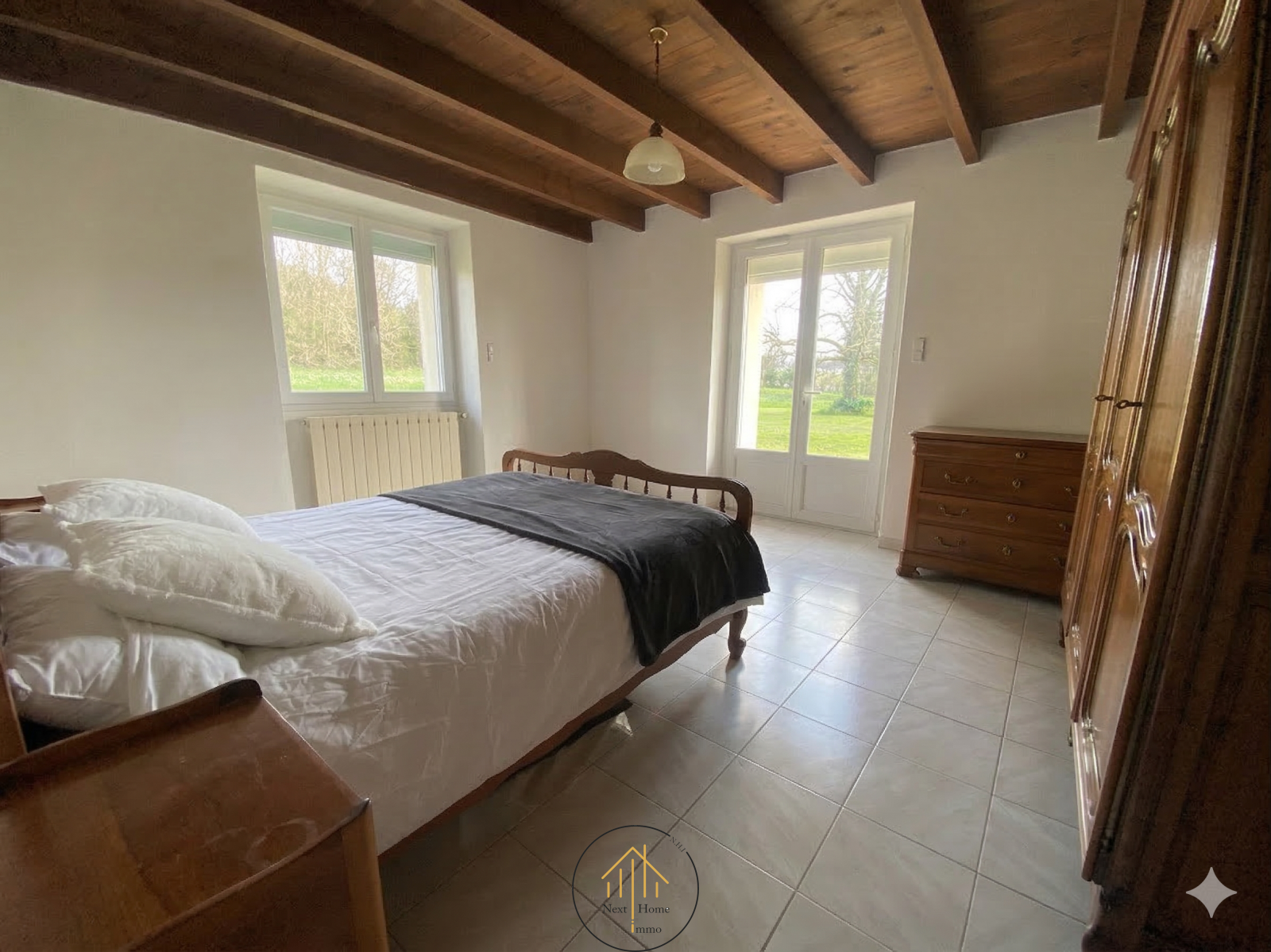 À l'étage : L'espace nuit se complète avec trois chambres supplémentaires, une salle d'eau, et un second WC indépendant.