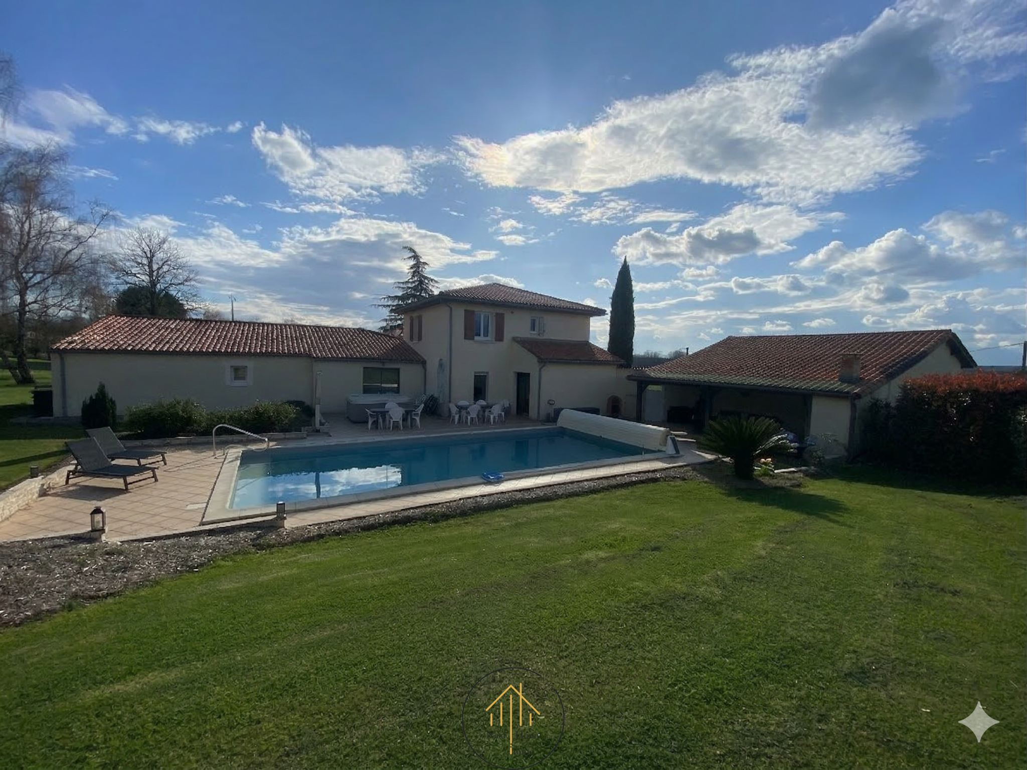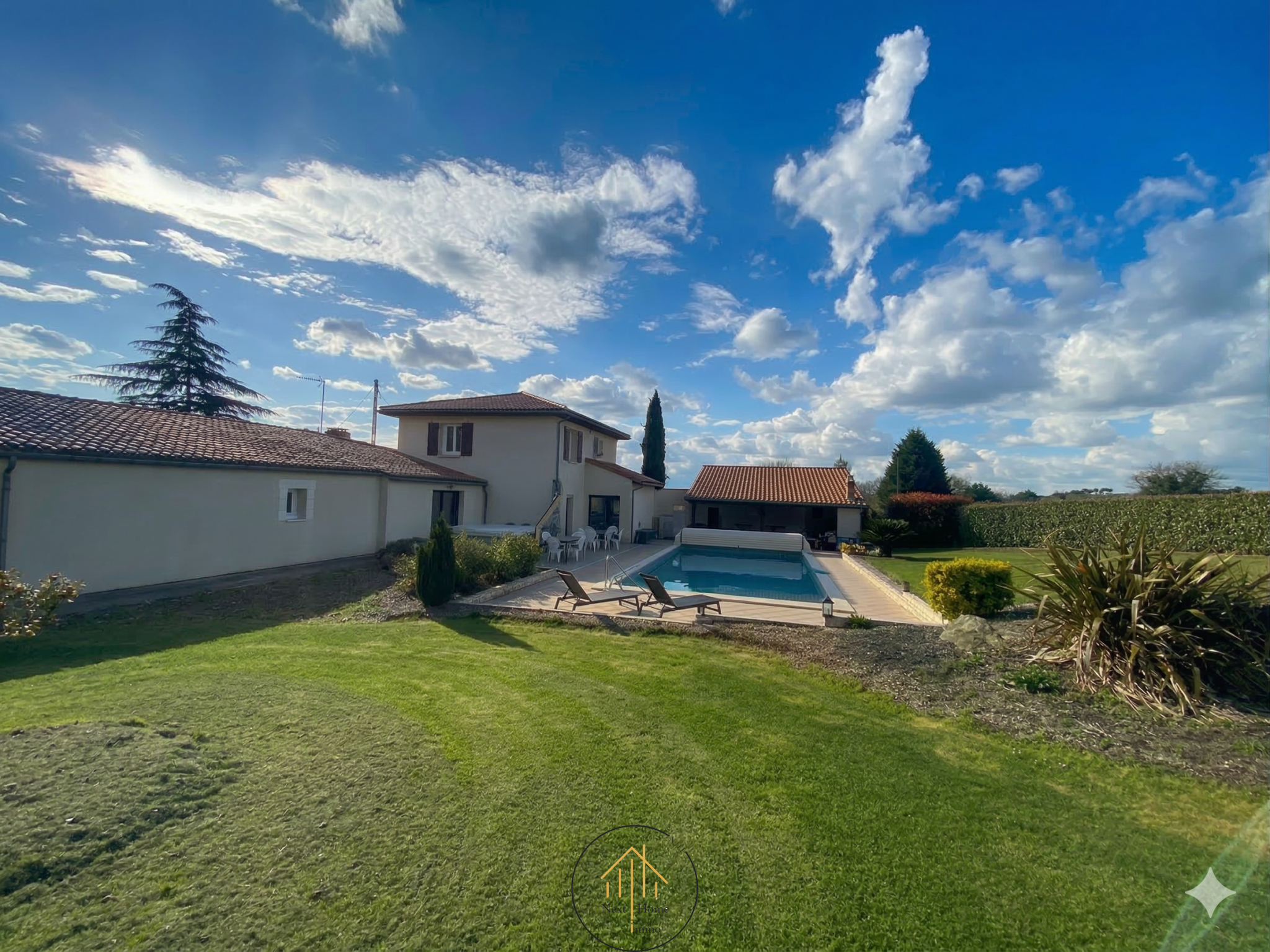 Espace Détente et Loisirs : Profitez d'une belle piscine chaufée avec sa plage aménagée, d'un spa et d'une pool house pour vos soirées d'été.