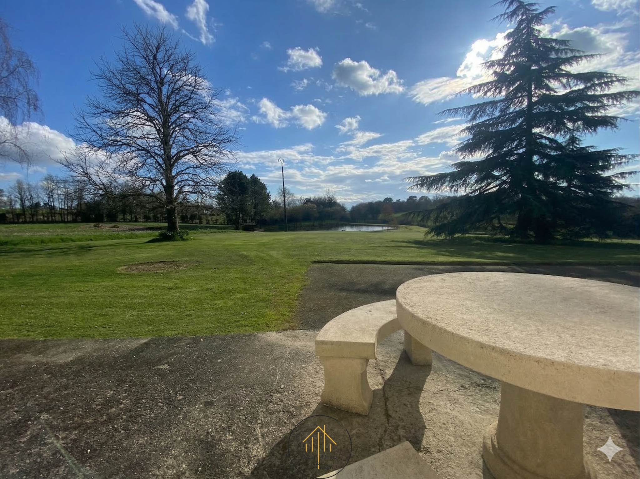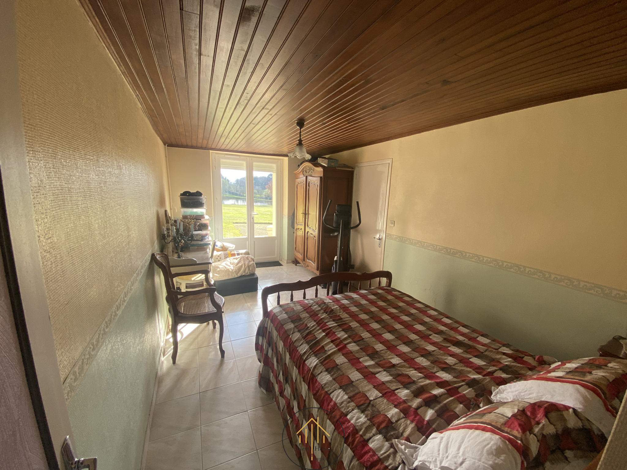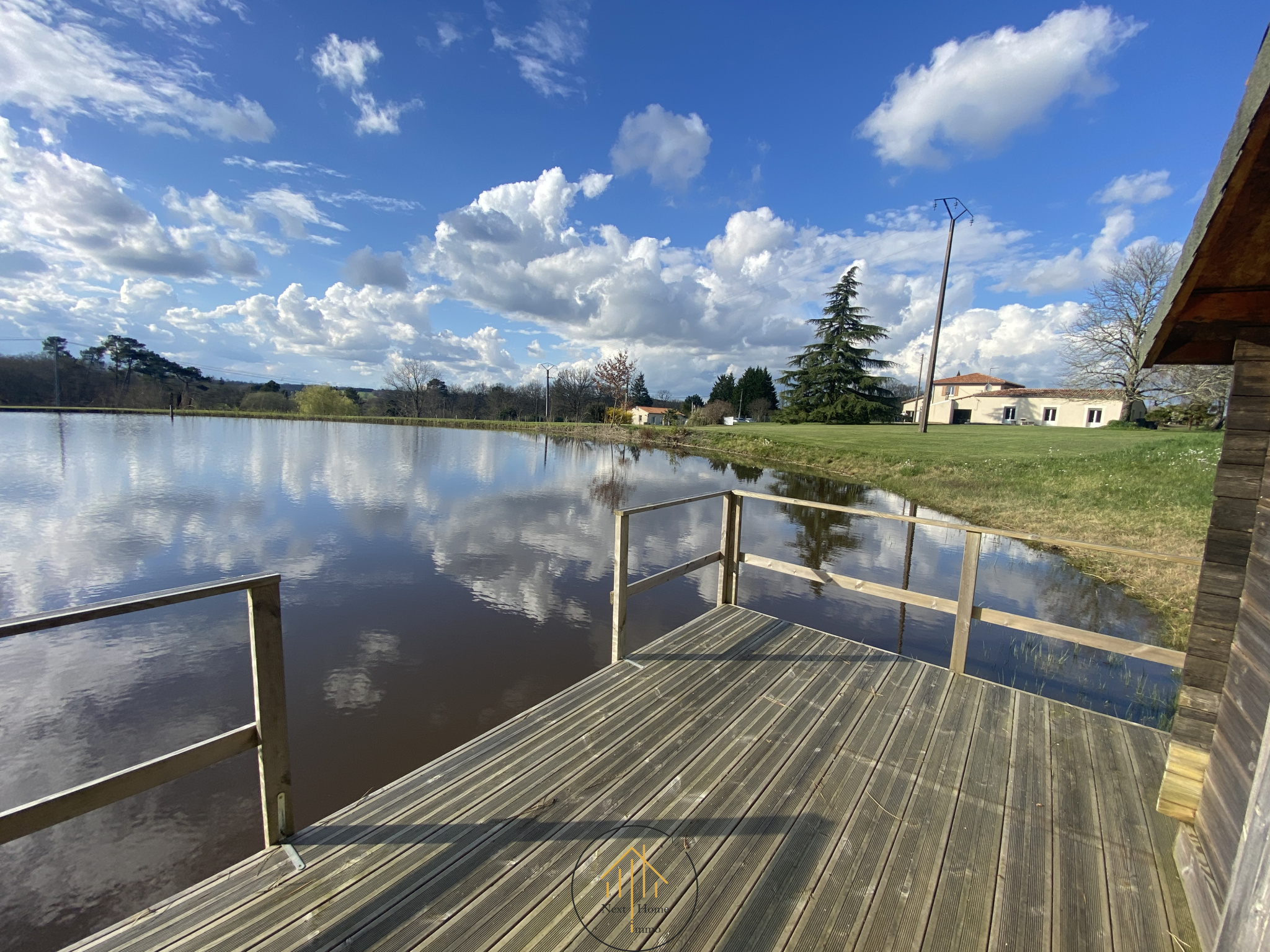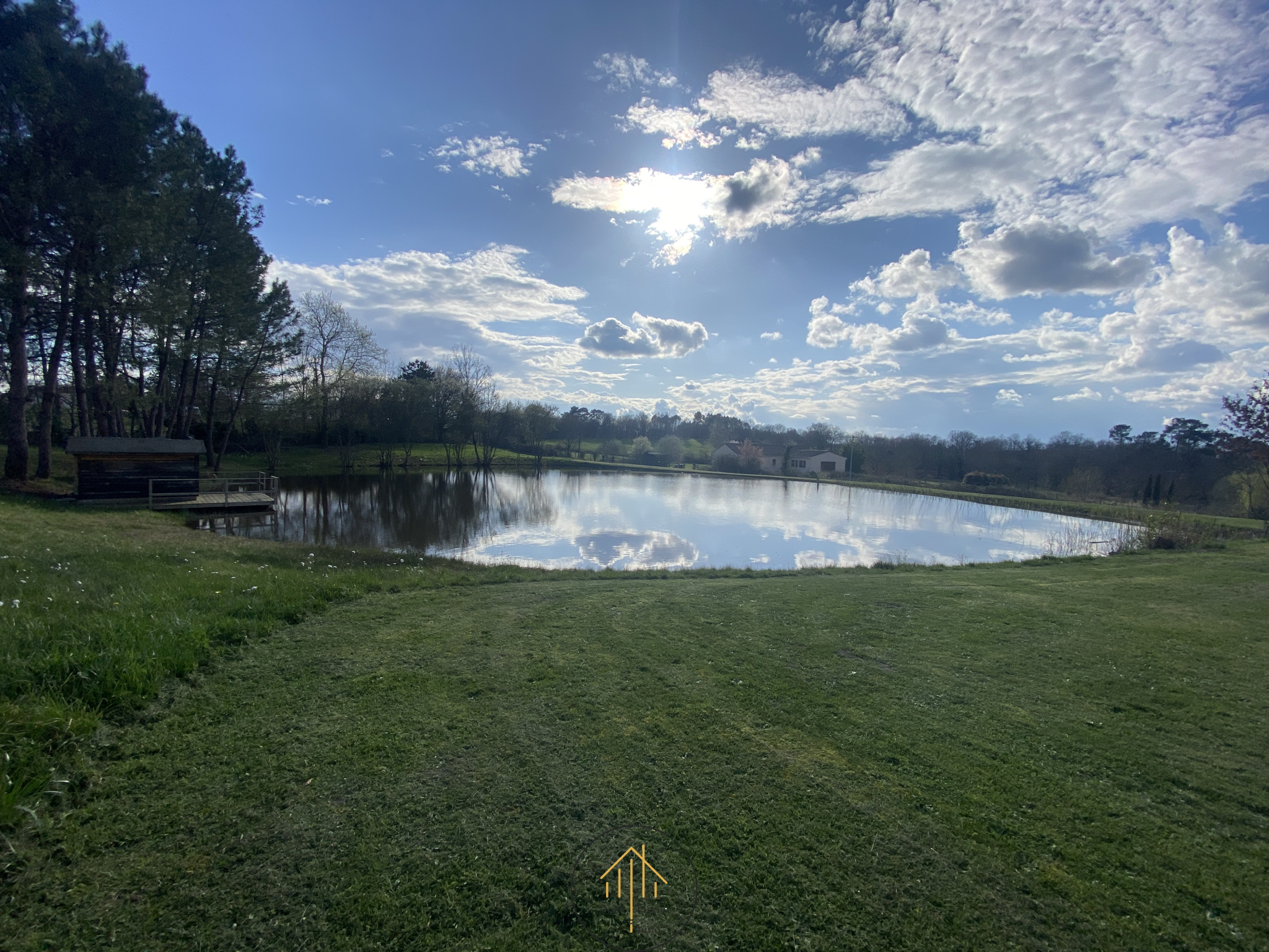 Le Parc : Le vaste terrain, entièrement clos d'un grillage sur parpaing, est idéal pour vos animaux. Il inclut un étang privé équipé d'un abri et d'un ponton.